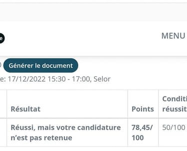 J'ai raté plusieurs fois ce test de dossier. Mais j'ai enfin pu prendre ma revanche grâce au coaching. Je vos recommander à 100 % le coaching de Audrey.